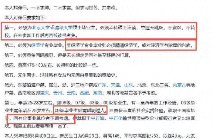 那会儿在节目中,凤姐直接列出让人目瞪口呆的相亲条件,简直就像是丑老鸭想吃金蟾一样离谱。她专科毕业,学历虽说挺不错,但她的要求也没啥特别的,反正就是希望找个北大清华毕业的人罢了。