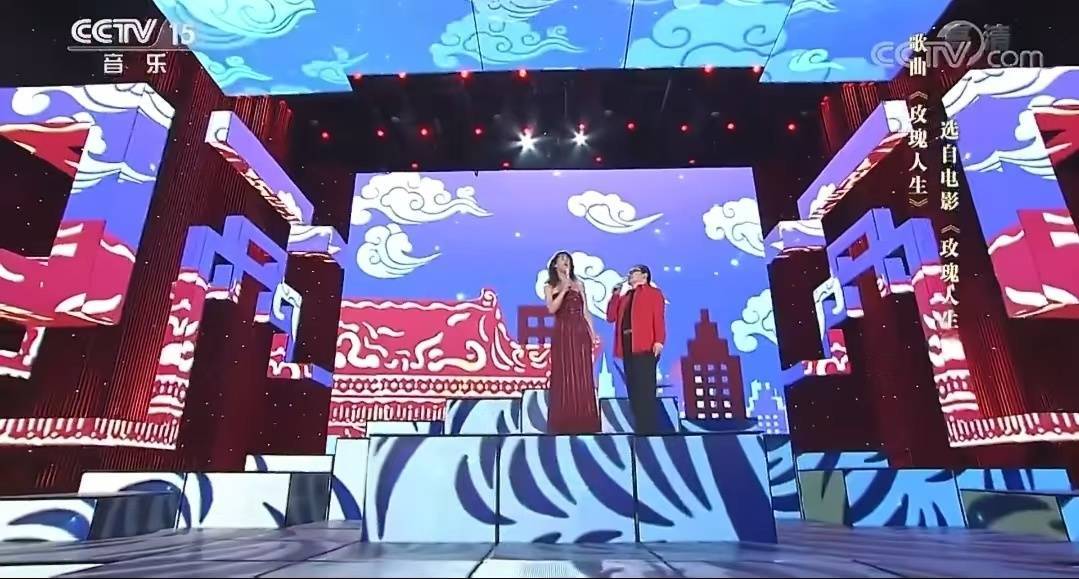 苏菲·玛索与刘欢合唱《玫瑰人生》。图/CCTV-15